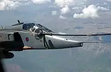 The Jaguar was to replace the McDonnell Douglas Phantom FGR2 in the close air support, tactical reconnaissance and tactical strike roles, freeing the Phantom to be used for air defence.[18] Both the French and British trainer requirements had developed significantly, and were eventually fulfilled instead by the Alpha Jet and Hawker Siddeley Hawk respectively.[19] The French, meanwhile, had chosen the Jaguar to replace the Aeronavale's Dassault Étendard IV, and increased their order to include an initial 40 of a carrier-capable maritime version of the Jaguar, the Jaguar M.[20] From these apparently disparate aims would come a single and entirely different aircraft: relatively high-tech, supersonic, and optimised for ground-attack in a high-threat environment.[21]