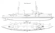 SMS Fürst Bismarck (Prince Bismarck)[lower-alpha 1] was Germany's first armored cruiser, built for the Kaiserliche Marine (Imperial Navy) before the turn of the 20th century. The ship was named for the German statesman Otto von Bismarck. The design for Fürst Bismarck was an improvement over the previous Victoria Louise-class protected cruisers—Fürst Bismarck was significantly larger and better armed than her predecessors.