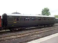 | Southern Railway | 6686 | Brake Corridor Composite | Bluebell Railway | Built in 1935. Operational, won the 'Highly Commended Coach of the Year' award for 1998/99. Restriction '4' coach that has always been loose, it was withdrawn in 1966.[2] | ![]() |