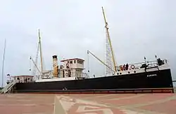 The steamer Bandırma, built 1878 in Paisley, Scotland, was a 47.7-metre (156 ft) cargo ship with 192 gross register tons capacity. It was christened Trocadero, and under this name, it sailed five years long as a freighter for Dansey and Robinson.[1] In 1883, it was purchased by Greek ship-owner H. Psicha Preaus, and renamed SS Kymi. 7 years later, it was sold to another Greek ship-owner, Cap. Andreadis, sailing under the same name. In 1891, it went down following an accident but could be floated again.
