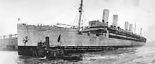 The SS Kaiser Wilhelm II was a 19,361 gross register ton passenger ship built at Stettin, Germany. The ship was completed in the spring of 1903. At the time of her launch she was larger by 1,900 tons than any other German ship and was surpassed in the weight of her hull and machinery only by the British liners RMS Cedric and RMS Celtic.[1][2] The ship was seized by the U.S. Government during World War I, and subsequently served as a transport ship under the name USS Agamemnon. A famous photograph taken by Alfred Stieglitz called The Steerage, as well as descriptions of the conditions of travel in the lowest class, have conflicted with her otherwise glitzy reputation as a high class, high speed transatlantic liner. The ship is well-known as the vessel which took Gustav Mahler on his last trip to America in October 1910, as well as Jean Sibelius to the States to conduct the premiere of his tone poem The Oceanides in May 1914.