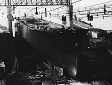 The burnt-out hull of Leonardo da Vinci at La Spezia before being scrapped, January 1982