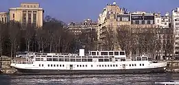 Ingenieur Minard was originally laid up in Cherbourg, but was moved to Le Havre on 26 April 1969. She lay idle for five years until bought by a private individual, Yvon Vincent, saving her from scrapping again. Her name was changed back to Nomadic and she was extensively converted into a floating restaurant and function vessel, and in October 1974 was relocated to the Seine in Paris.[1] A depiction of Nomadic was briefly seen alongside the Titanic in Cherbourg in James Cameron's 1997 film Titanic. By 1999, the business was in financial difficulties and Nomadic was seized by the Paris harbour authorities in 2002. The authorities removed some of Nomadic's superstructure to tow her below the Seine's bridges. On 1 April 2002 she was towed out of Paris to Le Havre.[1][2]