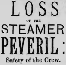 Headline in the Ramsey Courier regarding the loss of the RMS Peveril; Tuesday 19 September 1899.