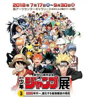 A promotional poster for the 50th anniversary exhibition of Weekly Shōnen Jump.
