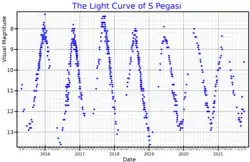 The visual band light curve of S Pegasi, from AAVSO data[1]