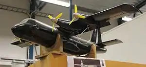 | Wind tunnel model of the Saab 1071 on display at Arlanda Flygsamlingar. | |