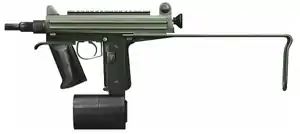 | Feed system | 20- or 30-round detachable box magazine 100-round detachable drum magazine |