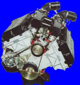 The Saab V8 had a 90° included angle between cylinder banks, four camshafts, and 4 valves per cylinder for a total of 32 valves. Both cylinder heads were from the Saab B202 engine, but to arrange for intake ports on both sides of the vee to be inside the valley and exhausts to be outside, flow through one head was reversed; the intake ports became exhausts and vice versa.[4] Pistons and connecting rods were also standard Saab B202 parts. The block was cast at the Valmet Rautpohja plant in Jyväskylä. The crankshafts were machined at the Linnavuori plant.[4]