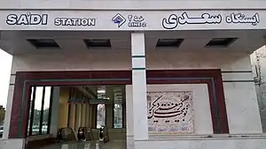 Saadi Metro Station is a station of Mashhad Metro Line 2. The station opened on 20 March 2018. It is located on Saadi Sq.[1][2]
