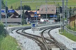 Saanenmöser railway station (Bahnhof Saanenmöser) is a railway station at Saanenmöser Pass on the Montreux–Lenk im Simmental line from Montreux to Zweisimmen. At 1,271 m (4,170 ft), it is the highest station on the line. It is located in the municipality of Saanen, canton of Bern, Switzerland.[1] An aerial cablecar at the station leads to Saanenwald-Saanerslochgrat.