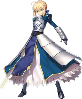 ![]() Saber wielding Excalibur, as seen in Fate/Grand Order. | |