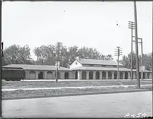 The station building was designed by Willis Polk in the Mission Revival style.[3]