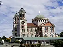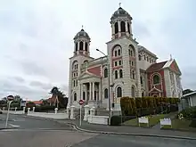 The Sacred Heart Basilica or Timaru Basilica, is a Catholic church in Timaru, New Zealand. Despite its name, it is not designated a basilica by the Catholic Church.[1] It was designed by the New Zealand architect, Francis Petre and is one of his most celebrated works. Its size and appearance make it one of the most important historic buildings of Timaru and of the South Canterbury region. The Basilica's twin towers and copper cupola are highly visible features of the Timaru skyline, especially from the south.[2] The Basilica is also one of the "most noteworthy examples of ecclesiastical architecture" in New Zealand with elements of "Roman and Byzantine architecture with touches of Art Nouveau decoration." It is a registered historic place, category 1.[3]