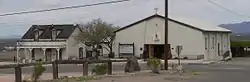 The oldest building is the 1881-built original church building, a one-and-a-half-story stuccoed south-facing vernacular adobe structure which included two church rooms on the first floor and a two-room rectory above.[2] It originally had a three-bay front porch with a veranda above. The building was extended to the north in 1882 by addition of a wooden shed-roofed form with a porch on its east side. The front porch was removed but later restored using a historic photo as model, and the rear porch was enclosed. In 2001 it was in use as the parish offices.[2]