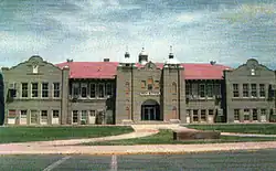 The Safford High School building, which was located where Safford Middle School is currently located, opened to students on September 13, 1915. It was designed by Henry O. Jaastad.[2] It served as the main high school building through the 1979–80 school year. Over the years other buildings were built. This included the WPA-built Baker Stadium, which served as the home of the Safford Bulldogs from 1938 through the 1986 season; a gymnasium in 1943, which allowed the previous gym to be retrofitted into an auditorium; and the other classroom buildings. This included a library built in the 1960s. It is noted that, during this period, the baseball stadium was at the old bleachers by Lafe Nelson School as was the field house for the football and wrestling teams.[3]