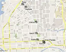 - ↑ Walker, Stephen. "Building the Planet Walk". Delmar Loop Planet Walk. Retrieved 21 November 2012.