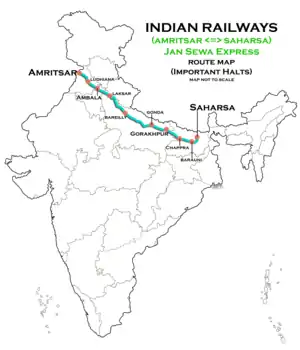 The 14617 / 18 Banmankhi Junction–Amritsar Junction Jan Sewa Express is an Express train belonging to Indian Railways Northern Railway zone that runs between Banmankhi Junction and Amritsar Junction in India.[1]