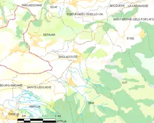Saillagouse is in the canton of Les Pyrénées catalanes and in the arrondissement of Prades. Saillagouse station has rail connections to Villefranche-de-Conflent and Latour-de-Carol.