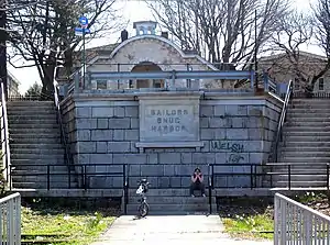 Sailors' Snug Harbor is a former station on the abandoned North Shore Branch of the Staten Island Railway.[1] It had two tracks and two side platforms. Located in the Livingston section of Staten Island north of Richmond Terrace, the station was approximately 1.2 miles (1.9 km) from Saint George Terminal.[2] It is at the northernmost end of the Snug Harbor Cultural Center and Botanical Garden.[3]