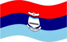 The flag, again, has horizontal stripes of the three School Colours, with the school crest at the centre.