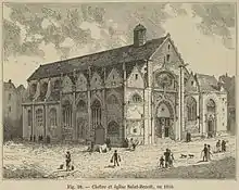 Saint-Benoît-le-Bétourné was a church in Paris. Originally dedicated to the martyrs Sergius and Bacchus, it was founded in the 6th century on rue Saint-Jacques[1] · [2] in what is now the 5th arrondissement of Paris. It was demolished in 1831 to build the théâtre du Panthéon, which was itself demolished in 1854[3] to build rue des Écoles.