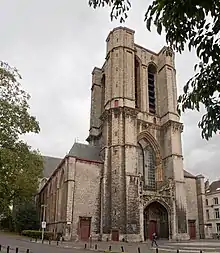 Construction of the current late Gothic church was probably commenced in 1440, and took place in two phases, separated by a long interval. During the first phase, in the fifteenth and sixteenth centuries, the western part of the building was built, including the tower, the three-aisled nave and transept. This was completed in 1528. The construction of the western tower continued and by 1566 two levels of the tower were completed. Then, due to religious conflicts, not only did construction stop, but looting and destruction took place. Part of the church was destroyed in 1578 by Calvinists and in 1579 the old choir was demolished.