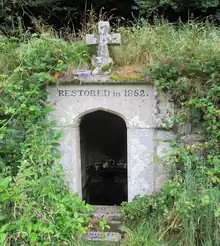 St Neot's well is located a short distance to the west of the church at St Neot, Cornwall. Hope, writing in 1893, sais that "It was arched over by General Carlyon, having fallen in many years ago."[57]
