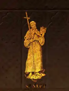 Neot (died 31 July 877) was an English monk. Born in the first half of the ninth century, he lived as a monk at Glastonbury Abbey. He preferred to perform his religious devotions privately, and he later went to live an isolated life in Cornwall, near the village now called St Neot. His wisdom and religious dedication earned him admiration from the monks. He visited the Pope in Rome, who instructed him to found a monastery in Cornwall.
