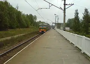 The Saint Petersburg–Hiitola railway is a 170-kilometer (110 mi) long railway with 1,520 mm (4 ft 11+2732 in) broad gauge located in St. Petersburg, Leningrad Oblast (Karelian Isthmus) and Republic of Karelia, which links Finlyandsky Rail Terminal to Khiytola (Finnish: Hiitola) through Devyatkino, Vaskelovo, Sosnovo, Priozersk and Kuznechnoye. Originally built by Finnish State Railways in the Grand Duchy of Finland, the railway was part of a trunk line from Vaasa by the Gulf of Botnia to St. Petersburg. In the 1940 Moscow Peace Treaty the territory was ceded by Finland to the Soviet Union. The railroad is now operated by the Russian Railways. The railroad is used by passenger trains between St. Petersburg and Sortavala. The track between Khiytola and Sortavala is a part of the Vyborg–Joensuu railroad completed in 1894.