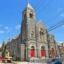 In 1924, the church rectory began plans for expansion after a donation of $70,000 ($1,195,301 USD in 2023) by Philadelphia businessman Thomas Fitzgerald.[7] In 1925, the church's convent caught fire and burned to the ground. Later in the year, the final touches on the main building were completed.[8] The convent was fully restored and blessed by Bishop J. Carroll McCormick in 1950.[9] Minor repairs were made in 1990 after a drunk driver crashed his car into the steps leading up to the church.[10] 2 months later, a gas explosion damaged the church's lower school, injuring one person.[11]