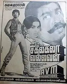 Sakalakala Vallavan (transl. Master of all arts) is a 1982 Indian Tamil-language masala film directed by S. P. Muthuraman and written by Panchu Arunachalam. The film stars Kamal Haasan, Ambika, Raveendran and Tulasi. Produced by AVM Productions, it revolves around a villager whose sister is raped by the village head's son when the former refuses to abide by his dictatorship. The villager vows to seek revenge and get his sister married to her rapist.