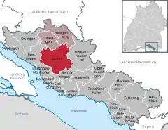 The community is located about nine kilometers east of Überlingen and ten kilometers north east of Meersburg in Linzgau mainly in the valley of Linzer Aach. The district Oberstenweiler is situated on a side peak of the Gehrenberg up to 600 m height. The district area covers approximately 6270 hectares[A 1] (as of December 31, 2014).[3]