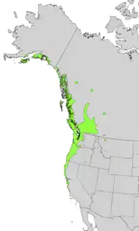 It is native to northwestern North America from Alaska to northern California to Montana.