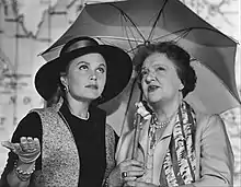 | Sally meets Mrs. Banford in the series pilot for Sally. While working as a salesclerk at the Banford & Bleacher Department Store, Sally Truesdale mistakes the scatter-brained Myrtle Banford for a penniless shoplifter. Eventually, Sally learns that Mrs. Banford is a rich widow and the co-owner of the store, and that she is looking for a travelling companion for a trip to Europe. Sally agrees to accompany her, and two women set off on their European travels. | |||||