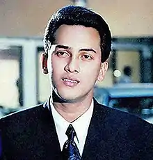 Chowdhury Muhammad Shahriar Emon[3] (19 September 1971 – 6 September 1996), known by his stage name Salman Shah , was a Bangladeshi film and television actor. Referred in the media as the "Prince of Bangladeshi Cinema" and the "First Superstar of Modern Dhallywood",[4] he is commonly regarded as one of the most influential and iconic figures in Bangladesh's film history.[5] Shah appeared in 27 films in a short acting career of three years, many of which were successful.[6] He first gained attention for his debut film, Keyamat Theke Keyamat (1993), and in the following three years appeared in leading roles in a series of commercially successful films, including Bikkhobh, Denmohor, Shujon Shokhi, Shopner Thikana, Ei Ghor Ei Shongsar, Sotter Mrittu Nei and Anondo Osru which established him as one of the most sought after leading men in Bangladeshi cinema.[7][8] Subsequently, he became the highest paid actor in the industry.[9] Three of his films, Shopner Thikana, Sotter Mrittu Nei and Keyamat Theke Keyamat are among the top ten highest grossing films of all time in Dhallywood box office.[10]