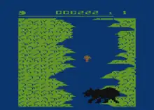 Each player starts with one life and gains another for each successful round.[3] Hitting the rocks or bank of the river drains Sam's life slightly. Along the way there are a series of rapids which will stop Sam's motion upriver until he jumps them by pressing the fire button. After landing, Sam dips underwater, and can stay there by holding down the button. More dangerous are the bears, fishermen and seagulls that will kill Sam instantly if caught, but can be avoided by careful swimming or hiding underwater.