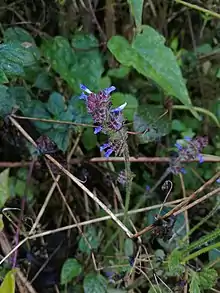 Salvia lasiocephala is an annual herb that is broadly distributed throughout the tropical Americas. It grows up to 60 cm (24 in) high, with leaves that are long-petiolate ovate-triangular, and 2.5 to 4 cm (0.98 to 1.57 in) long and wide. The inflorescence of terminal racemes has flowers with a pink to pale lilac or blue corolla that is 5 mm (0.20 in) long.[1]