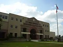 In 1955, Houston High School moved from its Capitol Street location in Downtown to its current location.[3] The previous Sam Houston High School became the Houston Independent School District administrative headquarters.[4] In July 1970 the first Hattie Mae White Administration Building became the new HISD administrative offices.[5] The Downtown Sam Houston building was demolished. As of 2011, a parking lot owned by HISD now occupies that site. A historical marker is on the south side of that block. In meetings, it had been proposed as a new location for the High School for the Performing and Visual Arts.[4]
