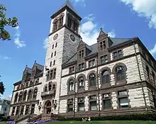 Other cities and towns in Massachusetts began issuing applications during normal business hours. Boston Mayor Thomas Menino greeted three of the couples who were plaintiffs in Goodridge and said: "We've broken down the barrier. I am so proud of these people. I am very proud to be mayor of this city today."[90] The first to marry in Boston City Hall were Tom Weikle and Joe Rogers, who lined up for their license application at 5:30 a.m. and were wed about 11 a.m. by Boston's city clerk.[86] Rejecting the Romney's insistence that the 1913 statute be respected, Somerville Mayor Joseph Curtatone addressed a crowd of same-sex couples that included several from New York gathered in front of Town Hall at 8 am.: "No matter who you are or where you come from, if you fill out the application, you will be given a license to marry. Those of you from out of state, welcome to Somerville."[86] The seven couples who were party to the Goodridge lawsuit were all wed on May 17,[91] beginning with Robert Compton and David Wilson at Boston's Arlington Street Church.[90] There were sizable celebrations in Northampton, Worcester, and Provincetown, while "explicit protests were scattered and few".[92]