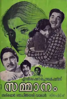 Sammanam (transl. Gift) is a 1975 Indian Malayalam-language romantic drama film, directed by J. Sasikumar and produced by Thiruppathi Chettiyar. The film stars Prem Nazir, Madhu, Jayabharathi and Sujatha. It is a remake of the 1959 Tamil film Kalyana Parisu.[1]