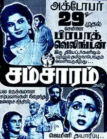 Samsaram (transl. Wife) is a 1951 Indian Tamil-language drama film directed by Chandru and produced by S. S. Vasan. A remake of the 1950 Telugu film of the same name, it stars M. K. Radha, Pushpavalli, Kumari Vanaja, Sriram, M. S. Sundari Bai, T. R. Ramachandran, D. Balasubramaniam, R. Balasubramaniam, K. N. Kamalam, and Kamalaveni Ammal. The film was simultaneously filmed in Hindi as Sansar, which Vasan directed.[2]