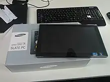The Samsung Series 7 Slate, XE700T1A, is a 11.6-inch (29 cm) tablet manufactured by Samsung. The Slate 7 was announced on August 31, 2011, incorporates a dual-core 1.6 GHz Intel Core i5-2467M (Sandy Bridge) processor, and runs the Windows 7 Home Premium or Professional operating system.[1]