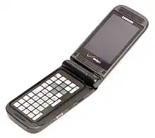 The Samsung SCH-U750, marketed as Samsung Alias 2 and also as Samsung Zeal, was a cell phone made by Samsung. The phone was only available in metallic gray. It features a dual-hinge design that can be opened in portrait or landscape style. The Alias 2 featured an E Ink-based keyboard.[1] In horizontal mode it features a QWERTY keyboard and VCAST music on the Verizon Wireless network within Australia and the USA.