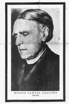- ↑ "Wife of Bishop Fallows, Chicago, dies, aged 76". Wisconsin State Journal. Chicago. July 31, 1916. p. 3. Retrieved August 10, 2020 – via Newspapers.com.