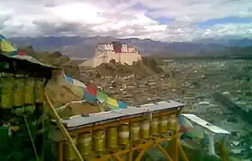 The castle was totally dismantled, rock by rock, by hundreds of Tibetans at the instigation of the Chinese in 1961.[13][14] Between 2005 and 2007, the building was reconstructed, financed by donations from Shanghai. Old photographs served as a basis for the reconstruction, which was executed in concrete.[15] Afterwards, the exterior was to be wainscotted with natural stones. The dzong, which in the 17th century served as a model for the construction of the Potala Palace, is set to become a museum for Tibetan culture.