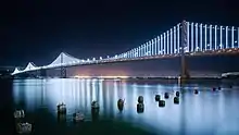 ![]() The western section of the bridge, seen in 2022. Part of the eastern section can be seen near Yerba Buena Island to the left. | |
