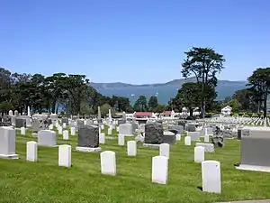 ![]() San Francisco National Cemetery looking north towards the Golden Gate Bridge. | |