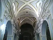 In the late 16th century, the church was ceded to Congregazione dei 72 Sacerdoti, and renamed the church of San Michele Arcangelo. The church was rebuilt in Baroque decoration with stucco and polychrome marble with maiolica floor tiles. For decades, the church fell into decay, and now the deconsecrated building is in the custody of the cultural organization: Fondazione Giambattista Vico.[1]