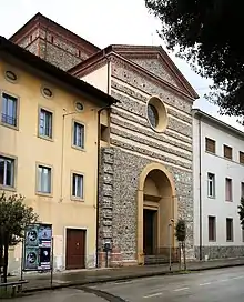 San Giovanni Battista is a deconsecrated Roman Catholic church located on Corso Gramsci in Pistoia, region of Tuscany, Italy. The present building is a reconstruction of the former Renaissance-style church which was severely damaged during World-War II, and now is used for exhibitions.